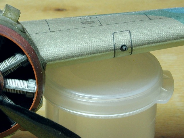The cockpit glazing was self-made, by heat-forming some transparent plastic material over the original paper cockpit, which was built and then filled with synthetic resin filling compound. The wheels are the wooden ones from Gomix.