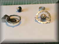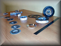 The next photo shows the build-up from the inner rim to the completed wheel, with the first chromed card used as the wheel trim insert.