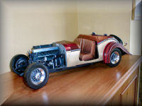 By the way, I have taken some measurements of the Mercedes for you: 20 inches long, 9 inches wide across the rear wings, and a height from the work surface of 6 inches. And it weighs in at about 1.5 lbs. Now that's some model car!