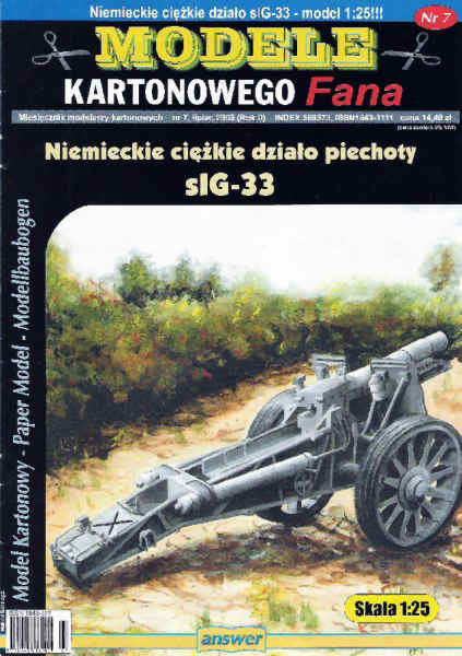 When I began this project, I first looked for a paper model that would be a good basis for the conversion. Since parts with rounded surfaces are very difficult to make in metal, I chose the model of the German sIG-33 cannon (sIG stands for schweres Infanterie Geschütz), made by the Polish distributor Answer in 1:25 scale.
