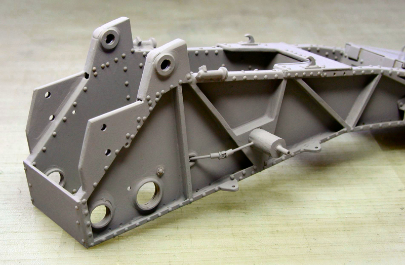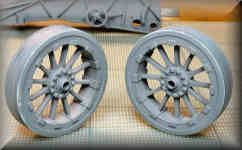 Continuing now with the model, it is time to add components to the main carriage frame and finish the wheels.