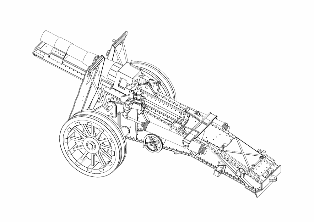 The following photo shows the carriage as completed so far. The next article in the series will discuss completion of the undercarriage and finishing of the gun carriage, including final coloring.