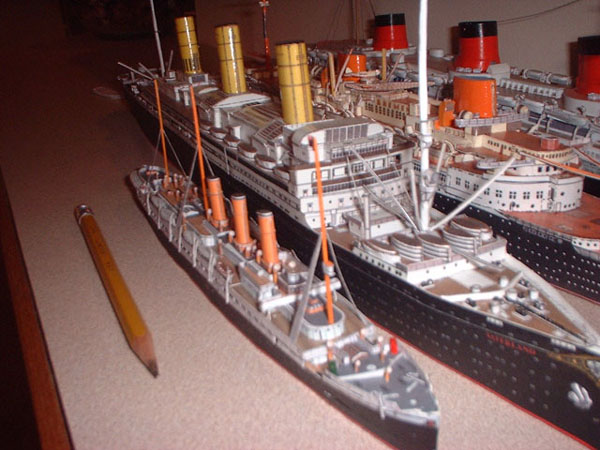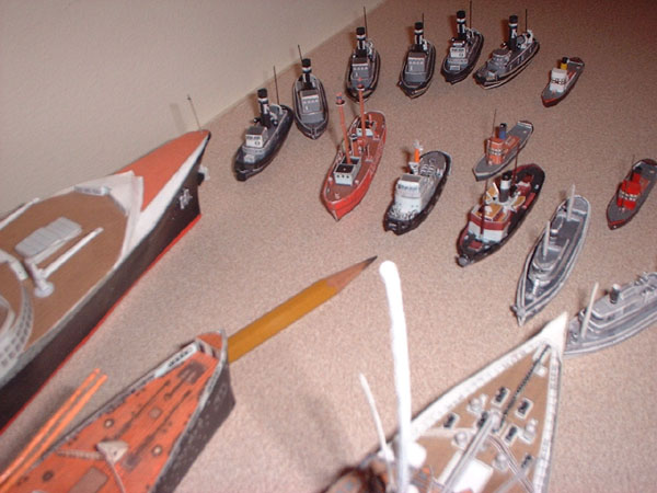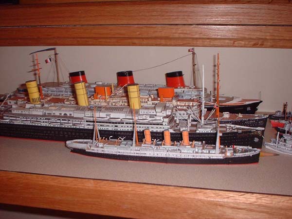 Here's some more of my busywork in the last few months...all this stuff have been reduced from various scales most 1:400 to 1:600...my mania of course great ocean liners...and tugs! Normandie in back then Vaterland, Bremin... and Augusta Victoria...the little 1889 liner in the front...my favorite...enjoy!