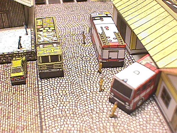 Customising and "parts box" are not common terms in card model circles, but ABC magazine has published Minibox models and I used a few of their cars on this model. I also added quite a few (hand painted) figures that I bought from a local architectural model company.